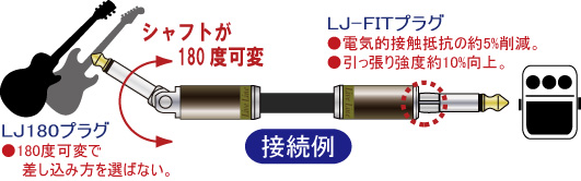 REVプラグの『楽器側への差し込み方を選ばない接続』と、FITプラグの『足元やアンプでの不意なプラグ抜けの心配のない確実な接続』という快適性が両立できます!